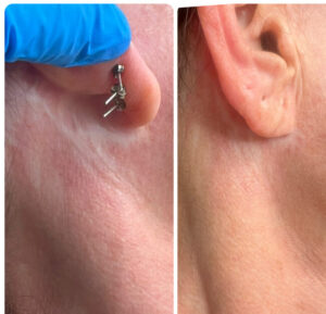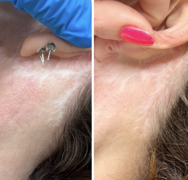 The process causes minor punctures, which create channels that trigger the body to produce collagen, melanin and elastin in order to fill the wounds – therefore promoting further healing. While this isn’t a total scar removal treatment (no such thing exists) it can improve the look, feel, firmness and appearance of scars considerably.